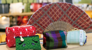 博多織の直売や体験コーナーも常設。